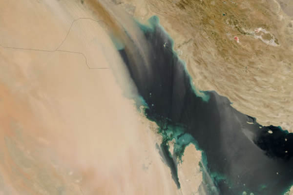 波斯湾上空的沙尘暴 来源: 蜘蛛网 时间:2012年6月07日 15:20 波斯湾上空的沙尘暴 美国宇航局地球观测站今日公布了一张卫星照片,展示了波斯湾上空的沙尘暴景象。 2012年6月2日,沙尘暴袭击了伊拉克东南部。大风刮起细泥沙向南吹去,经过波斯湾进入沙特阿拉伯东北部。同一天,美国宇航局Aqua卫星上的中分辨率成像光谱仪(MODIS)拍摄了这幅自然色照片。 虽然受此次沙尘暴影响的国家也曾在此期间出现过晴朗的天空,但科威特则完全昏天蔽日。据《科威特时报》6月4日报道,沙尘暴已经使科威特陷入瘫痪状态,能见度降至500米以下。沙尘暴活动预计还将继续。 新浪科技(思北) 上一篇 下一篇 TAG: 波斯湾 沙尘暴