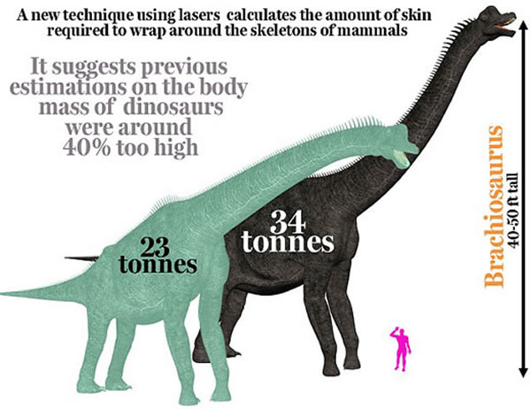 近日,来自曼彻斯特大学的比尔•塞勒斯博士(Bill Sellers),利用一项新的测量技术,成功为恐龙瘦身,测试结果显示,恐龙怪兽体重并不是之前人们宣称的那么重,而是比早期评估值的体重少21%。相关研究论文发表在近日出版的《生物学快报》杂志上。他说道:“之前科学界评估的蜿龙体重约为80公吨,现在恐怕这些恐龙的体重要重新评估了,根据新型测量技术结果来推算,世界上最大的食草动物—蜿龙,其体重只有23公吨,而另一个恐怖的巨型食肉动物—脊龙,体重也不过9公吨而已”。比尔补充道:“新的测量方法提供了更精确的恐龙体重值,尽管它们的体重依然很重,但却并没有之前评估值那么夸大其词”。
