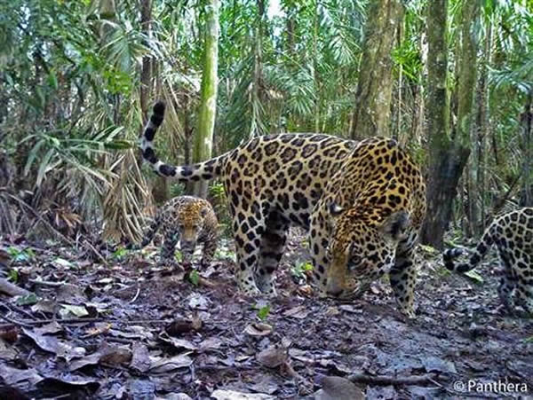 哥伦比亚隐藏摄像头成功捕捉到野生美洲豹和幼崽的画面