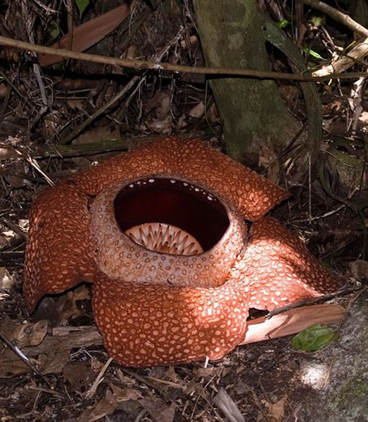 这种花之所以被称为“尸花”是因为它们释放出腐烂肉体的气味,它们存在于婆罗洲丛林中。经过1亿年的进化历史,这种花从宿主体分离出来,但共享着大量宿主体的基因,它们“吮吸”基因的过程类似于一些动植物遗传获得基因。
