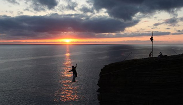 这些人来自名为Skyliners的冒险组织,他们在“圣约翰之头”300多米高的悬崖上表演高空蹦极。这种极限运动非常致命,平均每60名参与者就有一人死亡。但高空蹦极并非Skyliners唯一的冒险行动。他们还表演高空走钢丝,唯一的保护措施就是一条安全绳。