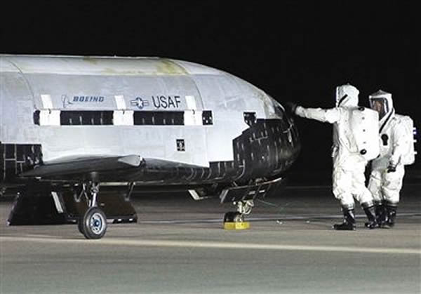 这架X—37B宇宙飞船于当地时间16日清晨5时48分降落在加利福尼亚州范登堡空军基地。返航前,这架机翼短而粗的“迷你航天飞机”发动机自动点火启动,脱离轨道,穿过大气层,像一架普通飞机那样着陆,在跑道上滑行。