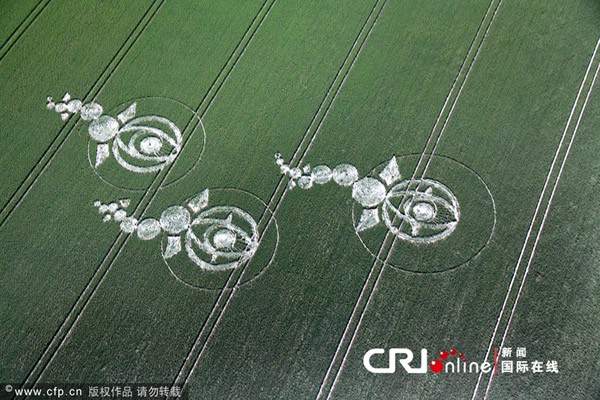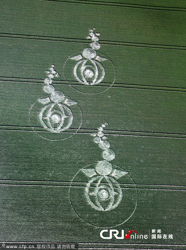 英国威尔特郡出现翻车鲀形状的麦田怪圈 来源: 蜘蛛网 时间:2012年6月19日 13:03 英国威尔特郡出现翻车鲀形状的麦田怪圈 英国威尔特郡出现翻车鲀形状的麦田怪圈 英国威尔特郡出现翻车鲀形状的麦田怪圈 英国威尔特郡,当地出现海洋生物翻车鲀形状的麦田怪圈,长约240尺。这些令人惊叹的图片是麦田怪圈专家Lucy Pringle在Woodborough山上拍摄的。 国际在线 上一篇 下一篇 TAG: 麦田怪圈 英国