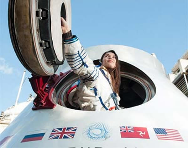 一名女飞行员登上英国Excalibur Almaz公司拥有的太空舱