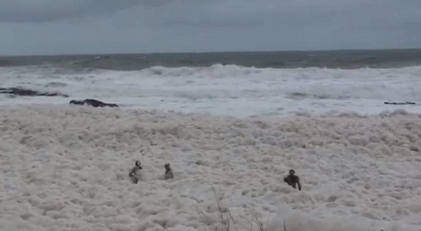 据报道,每隔数年这里就会形成这种海浪泡沫奇观,但泡沫不会存在过长时间。而此次形成的泡沫景观宽度达5公里。不少当地民众与游客来到此处,拍照留念,甚至有人脱光了衣服跳入其中,尽情地享受了一把“泡沫浴”。