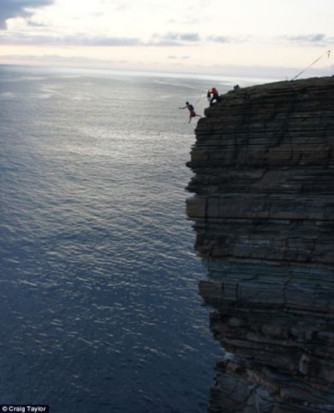 对于冒险家来说,下午茶或商场里所谓的新奇商品从来就不是他们关注的事情。如何寻求不同的刺激,挑战自己的极限才是他们所热衷的。近日,一群法国冒险家来到苏格兰东北方群岛的崖壁上走钢丝并极限跳伞,再次向世人展示他们的胆量。