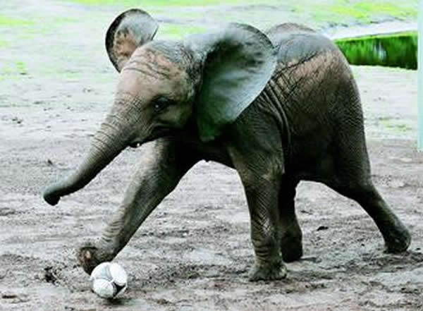 德国小象"尼利"25日起脚踢球,帮德国球迷预测2012欧洲国家杯比赛的输赢。