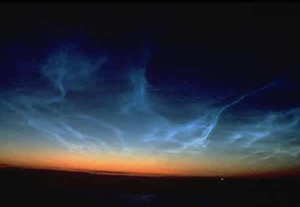 正常情况下,这些云层过于昏暗无法看到,夜光云仅在太阳处于地平线以下时才被照亮可见。然而,从地球角度观看这一较低大气层处于阴影之中。这一奇特的云层形成于距离地球表面76-85公里之间,这里蕴藏着充足的水蒸汽。但是云层也需要这些水分子像灰尘一样附着凝结在一起,当水分子附着在灰尘或者其它微粒上,将形成液滴或者冰晶体。