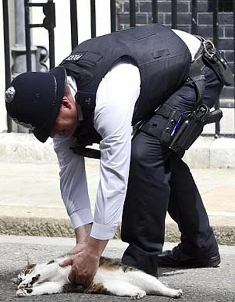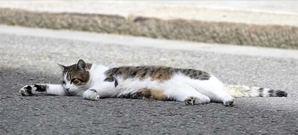 据英国《每日邮报》6月26日报道,俗话说,宠物通常与主人有着惊人的相似之处。英国唐宁街10号“御猫”拉里(Larry)与主人卡梅伦(David Cameron)也一样,他们似乎都喜欢“冷静放松”。但拉里偏爱的地方竟是首相府前的马路中间,令前往那里开会的政府官员头疼不已。