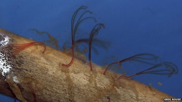 加州大学圣地亚哥分校斯克里普斯海洋研究所的西格莉德-卡兹博士将会在试验生物学协会的年度会议上介绍研究团队的研究。这些不同寻常的蠕虫群体发现于海底,生活在遗落在海底的鲸鱼或者鱼类骨骼之上,自从2002年被蒙特雷湾水族馆研究所意外发现之后就引起了人们的兴趣。