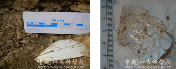 近日,中国地质科学院地质研究所姚培毅研究员、闵隆瑞研究员在河北阳原盆地开展野外地质调查工作时,在早更新世早期(距今约260万年前)地层中发现了双壳类无齿蚌(Anodonta sp.)化石,其内壁产有20余颗珍珠,最大的直径约为1.5毫米,均保持着较好的珍珠光泽。