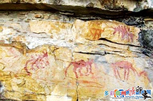 在该洞南侧东西长15米石壁上发现岩画40余幅,20余幅较清晰。洞内还发现了明代石棺遗存,至今保存完好。