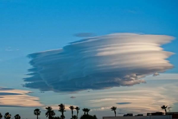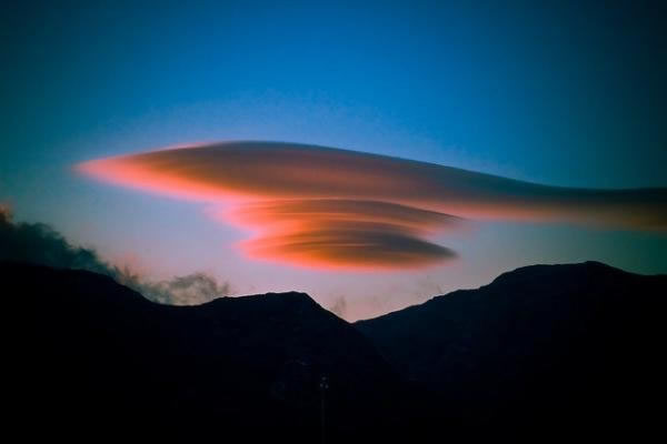 这种像碟子一样的平滑荚状云也会让它们被比作飞碟。事实上,它们曾经被误认为是真正的不明飞行物,或者至少是某种不明飞行物的隐形装置。事实上根据BBC报道,荚状云被称作是全世界看到不明飞行物事件的最佳解答。看一下这张照片,我们就能了解原因。