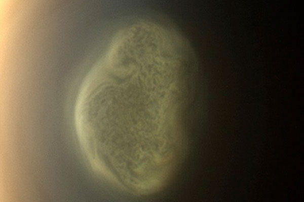 拍摄的照片上显示了土卫六南极地区上空的漩涡结构