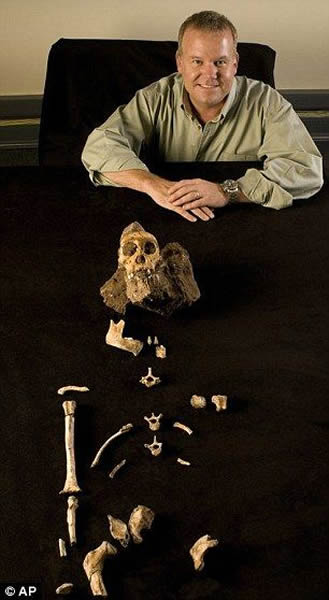 伯杰教授摆出卡拉伯非常完整的残骸,这是南方古猿的早期样本。