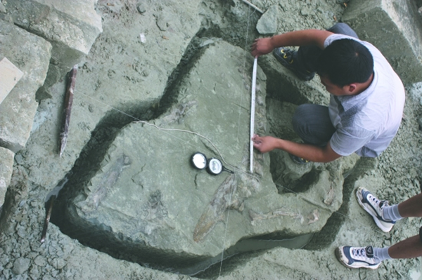 自贡发现肉食性恐龙化石 来源: 蜘蛛网 时间:2012年7月18日 11:27 自贡发现肉食性恐龙化石 自贡市自流井区舒坪镇一采石厂日前发现了部分恐龙化石,经初步鉴定,此次发掘的恐龙化石为肉食性恐龙化石。(图中圈内为恐龙头部)这是自贡市继1985年首次发现亚洲最大肉食性恐龙和平永川龙之后的再次发现。目前这批包括部分脊柱在内的8块化石已发掘完毕,保存于自贡恐龙博物馆,等待进一步研究。 四川新闻网-成都商报 周茂梅 上一篇 下一篇 TAG: 化石 恐龙