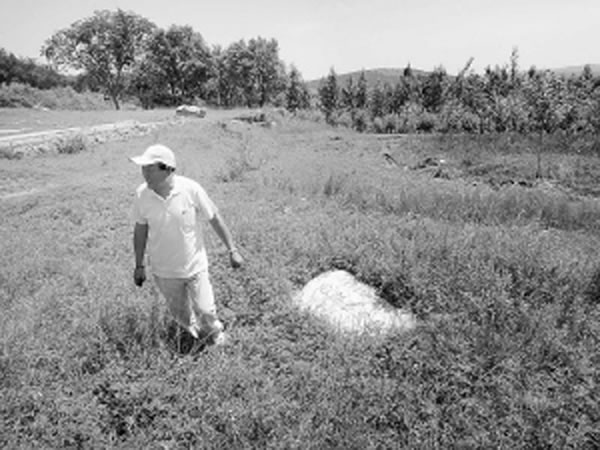 完颜娄室家族墓地石碑高耸于平地之间,顺着小路走下去,丛林间左侧的深沟里就曾是原始时期人们为饮水将山路劈开自行建成的水渠,虽然已经没有水了,但却很明显地能让专家们看到当时的情形。