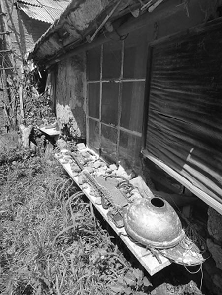 在院落的另一侧,新盖的白色砖瓦房,较工整,透过污浊的玻璃向里看去,左手边的这间屋子堆满了杂物和大量书籍,这应该是老人的工作室或客厅。而在另一面是一张双人床,应该就是老人平日里休息的地方。时隔5年光景,记者与郭相武拜访老人的家,“院荒凉、人已空”,这里早已杂草丛生、用石头堆砌的院落让人暗自神伤。