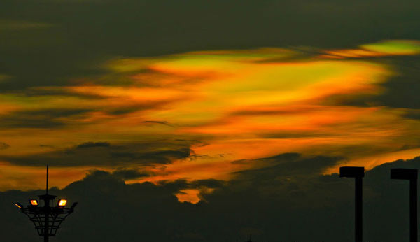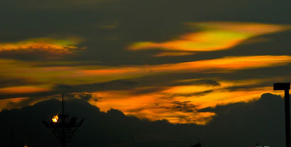 广东佛山出现“七彩祥云” 来源: 蜘蛛网 时间:2012年7月20日 10:17 广东佛山出现“七彩祥云” 广东佛山出现“七彩祥云” 广东佛山出现“七彩祥云” 2012年7月19日傍晚6时30分左右,佛山市顺德区乐从镇西边方向出现了“七彩祥云”。最初,只有少许绿色与红色云彩从云层边缘显出,浅浅地,彩云面积越来越多,且颜色也更加丰富,到7时许到达鼎盛时期,赤橙黄绿青蓝紫七种颜色全部显现,引得路人纷纷停下脚步观看这一奇异天象。一市民说,看到“七彩祥云”,这些一种少有的吉祥征兆。 国际在线 上一篇 下一篇 TAG: 七彩祥云