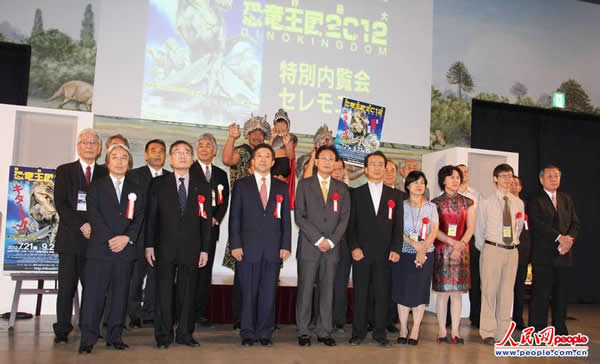 作为中日邦交正常化40周年纪念活动之一的“世界最大恐龙王国2012”大型展览7月20日下午在日本千叶县幕张国际会展中心拉开帷幕。中国驻日本大使馆公使韩志强,日中友好协会会长加藤紘一,朝日电视台常务董事粕谷卓志,群马县立自然史博物馆名誉馆长长谷川善和,中国科学院资源环境科学与技术局副局长常旭,中国国家古生物化石专家委员会办公室副主任王丽霞,中国科学院古脊椎动物与古人类研究所研究员王原,以及为此次展览提供珍贵恐龙化石的山东省诸城市、内蒙古自治区、辽宁省等相关负责人,协同东京企划公司、电通公司、PIA株式会社等主办、协办、后援单位代表百余人出席了开幕式。