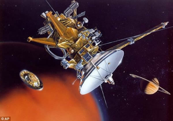 卡西尼号艺术概念图。正是这个航天器拍到了这些惊人的闪电照片。