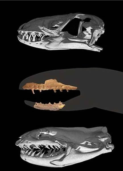 这项最新研究报告发表在《自然》杂志上,研究人员研究了之前未被描述的这种远古蛇类骨骼,其中包括:两块上颌骨、形成牙齿的下颚骨,以及一些额外椎骨。