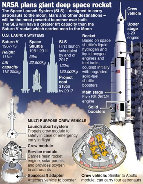 未来空间发射系统运载火箭将超越土星五号重型火箭与航天飞机