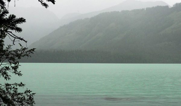 7月29日下午16点45分,湖北游客龚海燕一行七人在新疆喀纳斯湖一道弯游冒雨游玩时,在距湖面30米处的岸边拍摄到了不明水生物。据龚海燕介绍,不明水生物现身处水体呈红色,水面漩涡持续了约1分钟左右。喀纳斯湖位于新疆北部的阿尔泰山中麓,是中国第二高山深水湖泊,喀纳斯湖以云海佛光、枯木长堤、水下森林、神秘“湖怪”著称于世。每年春季都有游客拍摄到不明水生物的怪异画面,今年6月21日,又有游客在观鱼台拍摄到了喀纳斯神秘“湖怪”。
