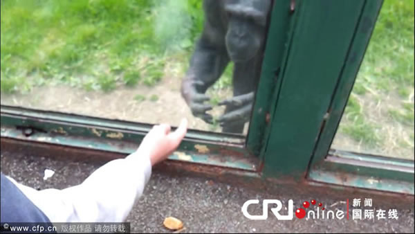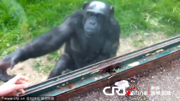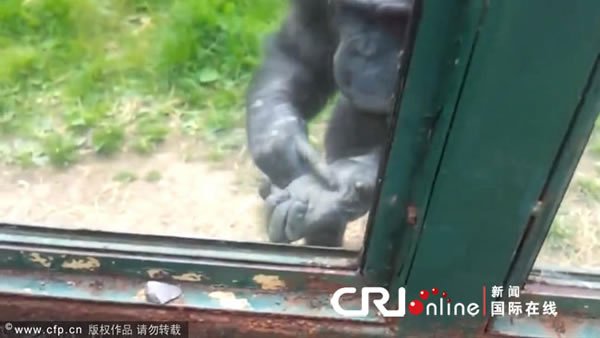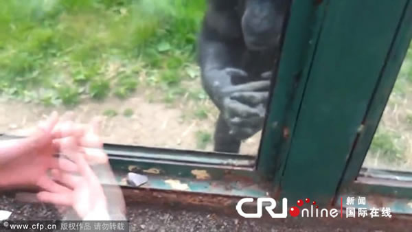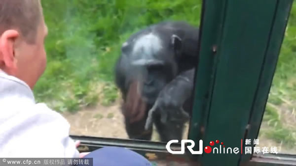 英国动物园一只黑猩猩用“手语”示意游客助其逃离