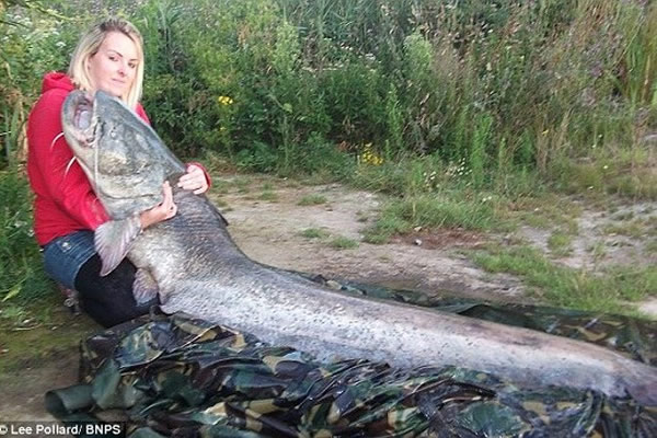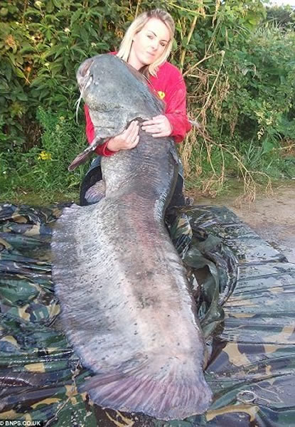 英国女孩钓到一条重53.5公斤的巨型鲶鱼