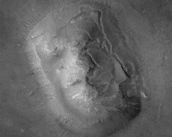 1976年美国宇航局的海盗1号围绕火星飞行,拍摄到了这颗红色星球的表面图片。当这些照片公布的时候,似乎凿刻而成的一张人脸状标志让人们非常的兴奋。很快关于火星上古老而又先进文明的猜测就泛滥成灾,这是由于这张人脸状照片看起来有点像一个埃及法老。在1998年,火星全球勘探者号拍摄的照片揭开了火星上这个男人的神秘面纱。后来的照片显示,它只是一个自然的地貌,只是由于形状和拍摄角度使它看起来就像人类面孔。