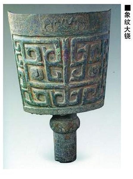 青铜大铙。湖南出土和收藏的青铜铙类乐器达60件以上,是出土铙类乐器最多的省份。有“铙王”之称的国内迄今所见最大最重的青铜铙高度超过一公尺,重量达221.5公斤。铙上的花纹除常见的云雷纹外,更有浮雕或立雕的象、虎、龙、鸟、龟、蛙等动物,看似厚实笨重,却讲究装饰。研究者认为,正是这些铙类乐器,到西周初期演变为甬钟,得益于南乐的北传,形成了西周礼乐制度的重要一环——青铜编钟,显示出湖南青铜铙类乐器在商周文明进程中的地位和作用。
