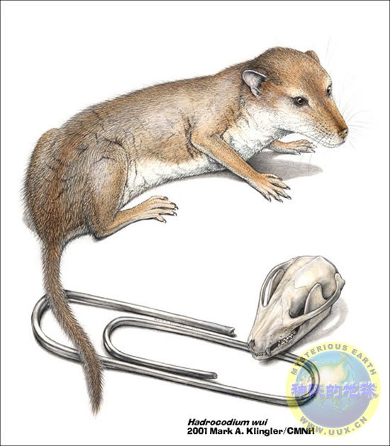 中美科学家发现了早期哺乳动物的一个微小的新物种——吴氏巨颅兽(Hadrocodium wui),它可能是已知与现生哺乳动物亲缘关系最密切的早期哺乳动物。虽然它的重量只有2克(大小相当于一个大曲别针),但巨颅兽拥有哺乳动物的关键特征,比如中耳骨与下颌分离。这些特征要比先前化石记录中所公认的要早0.45亿年。Zhe-Xi Luo和同事们说,这表明哺乳动物独有的特征可能是逐步进化的。A. Wyss在相关的研究评述中论述了作为一个“哺乳动物”意味着什么。