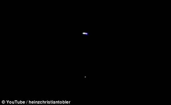 不明飞行物对飞机(下方的点)的反应非常敏捷,这似乎证明这个物体并不是远程操控的无人驾驶飞机。 “这个不明飞行物可能是盘装或者三角形状。”在瑞士目击UFO事件还是很少见的。在过去的8年里总共只有10起,不包括托布勒这次目击。兴奋不已的托布勒先生承认他也有可能搞错了,这仅仅是一个不明飞行物而已,考虑到它可能是某种无线电操控的无人驾驶飞机。但是倘若真的是无人驾驶飞机,为什么当夜空中的飞机接近它时,它对飞机的反应如此敏捷。“如果是遥控飞机玩具,那和UFO真是个奇怪的巧合。”