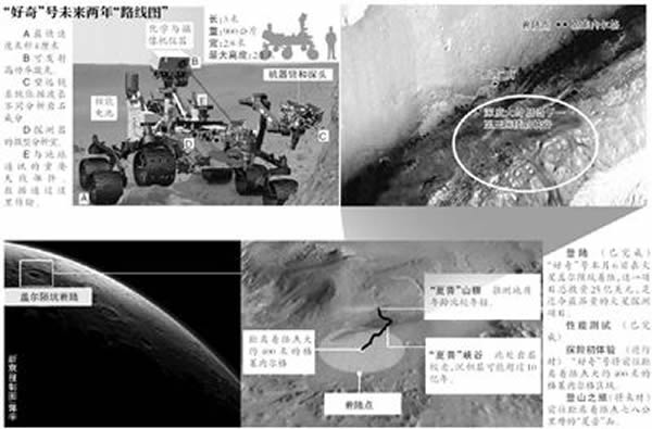 依照设定路线,“好奇”号随后将前往距离着陆点七八公里外的“夏普”山。研究人员推算,“好奇”号走完这段路程需要数月至一年时间。