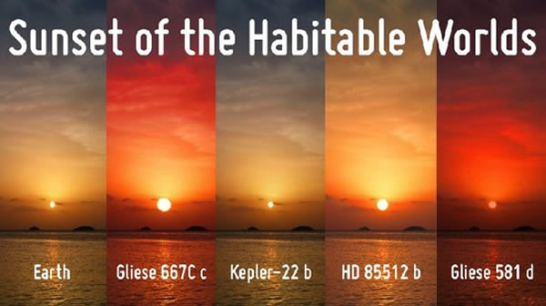 地球与目前发现的数个可能存在宇宙生命的行星上看日出的景象对比