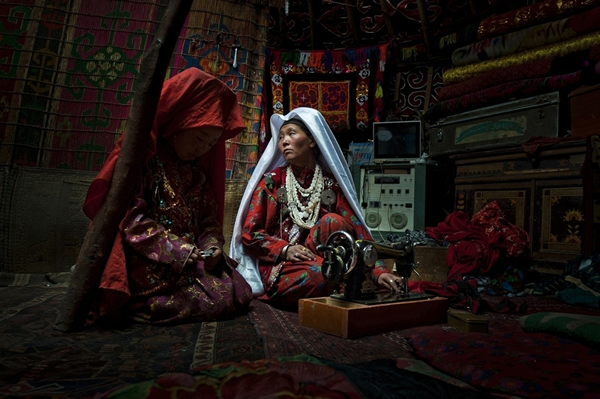 塞德里克-侯因拍摄的题为“蝴蝶”的照片荣获最佳照片奖。这张照片拍自瓦罕走廊的吉尔吉斯地区。在一个家庭圆顶帐篷中拍到的这种日常生活的亲密关系和这些游牧部落所生活的恶劣环境形成对比。
