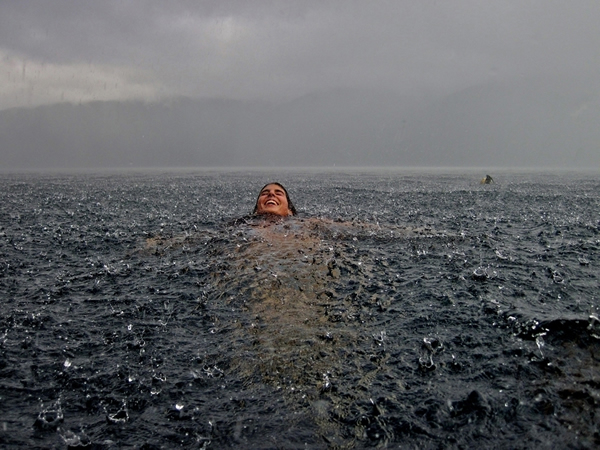 摄影师卡米拉-马苏说:“我姐姐住在智利南部。她的家在一个湖泊边上。那天我们坐在壁炉旁聊天,突然暴雨倾盆,我姐见到这一幕十分兴奋,跑出去一头扎进湖中畅游起来。我趁机拍下了这张照片。”