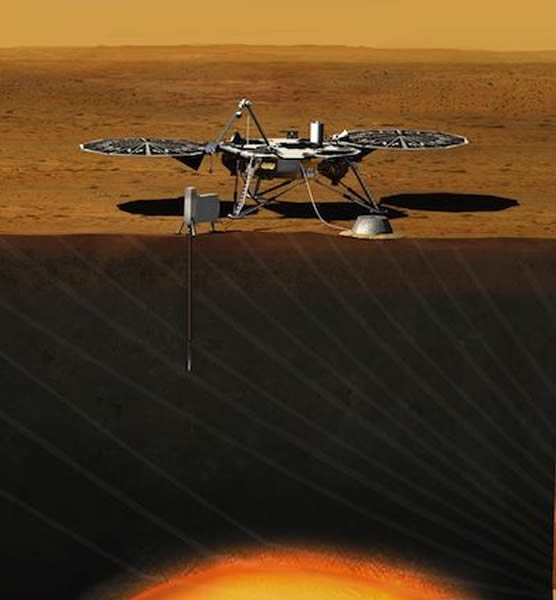“洞察(InSight)”号探测器将会对火星的地质活动、地震、摆动和内部温度进行测量,收集有关火星演变的数据,让科学家把它的演变史与地球过去的地质演变进行对比。美国宇航局科学任务董事会负责人约翰-格伦斯菲尔德说:“这是我们第一次认真查看火星的内部,目前还有很多科学问题急需知道答案。”“洞察”号预定将在2016年3月发射升空,并于6个月后抵达火星,借助降落伞进入这颗红色行星的大气层,然后再点燃制动火箭,在它们的推动下降落到火星上。