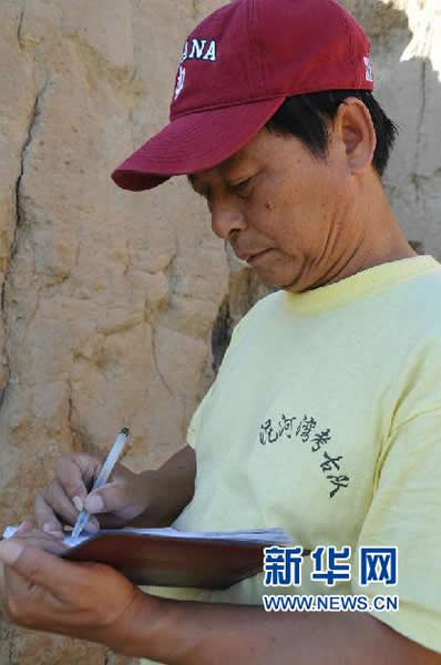 8月22日,成胜泉在记录和整理泥河湾马圈沟遗址的土层信息。