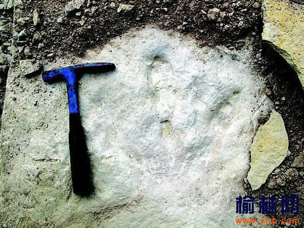 去年,子洲县电市镇王庄村村民的一个小发现,再次让人们浮想联翩。在该村一处突出的岩层上,村民们发现有形状像鸡爪的脚印。难道这批“鸡爪”脚印是远古时期恐龙留下的?