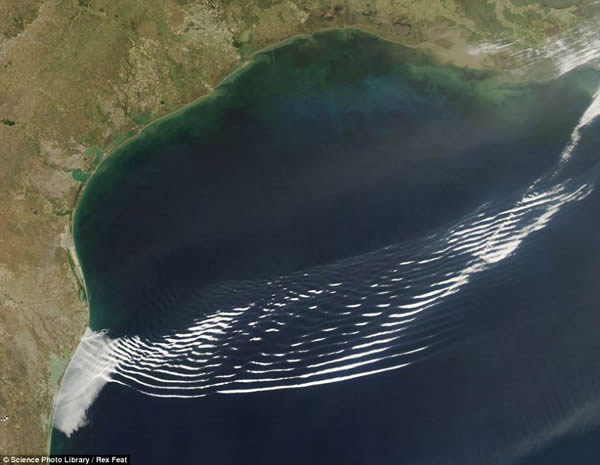 它通常是由于上升气流延伸至山脉,或者伴随着雷电交加的暴风雨而产生。重力波状的云层仅产生于上升气流进入稳定的气穴。向上的气流冲量在气穴中产生连锁反应,从而形成大气层中云层的变化,改变云层动态曲线,使云层出现如同重力波一样的摆动波纹。
