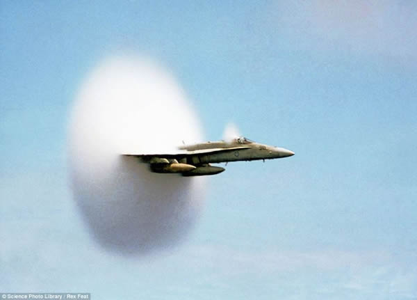 音爆云又称“普朗特-格劳厄脱凝结云”。它是由于激波面后方以气压降低导致温度的降低,引起水气凝结导致的。 水气凝结变成微小的水珠后,肉眼看来就像是云雾般的状态。这个低压带会随着离机身的距离增加而迅速消失。