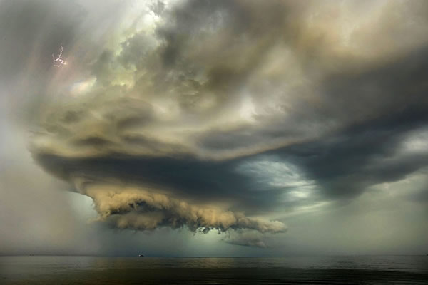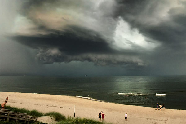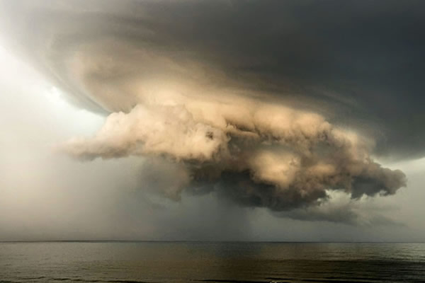 俄罗斯波罗的斯克海滩上空超级恐怖的风暴云景象