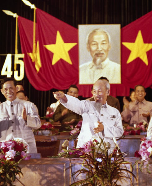 越共第一书记黎笋1966年和胡志明在河内的一个集会上。