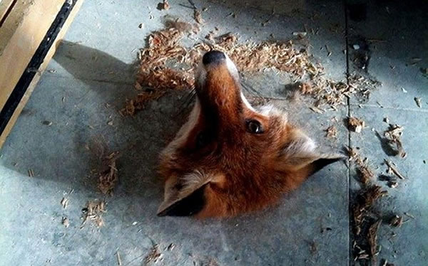 英国一只狐狸脑袋被地板卡住 来源: 蜘蛛网 时间:2012年9月05日 11:27 这只狐狸脑袋卡在了地板上的洞里,动弹不得,工人们将它救出。 近日,在英国赫特福德大学,建筑工人在翻修学校办公室的时候发现了一只狐狸。这个可怜的小家伙脑袋卡在了地板上的洞里,动弹不得。工人们将它救出。 工人们认为,这只狐狸当时可能正想从地板的洞里钻出来,不料脑袋钻出后被卡住。他们用撬棍将地板撬下,把狐狸从地板上拉了出来。 随后,工人们在附近的安全地点将狐狸放生。 中国新闻网 上一篇 下一篇 TAG: 狐狸 英国