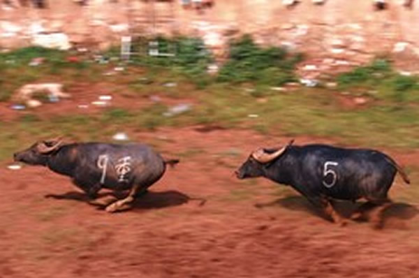 中国式斗牛虽然算不上是一种广为人知的娱乐活动,但这项比赛随着经济的发展也变得颇具人气。过去,斗牛只是农民赚点零花钱的田间消遣,现如今,这项赛事的奖金已高达五万元(将近8000美元),而作为斗牛比赛发源地的云南某小镇甚至已专门为此新建了一座斗牛场。