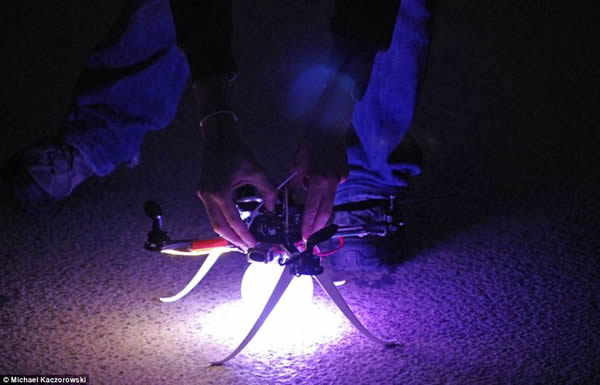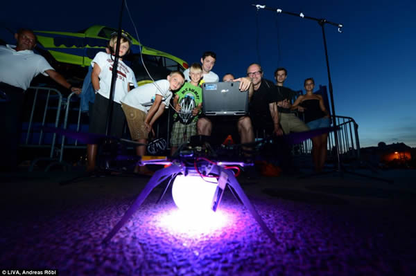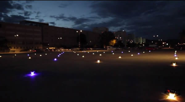 英国每日邮报报道,近日在夜空中出现了奇怪的发光物体,他们在空中完美成形,并以高度精确性移动并成型,初看还以为是小型UFO。事实上,这是quadrocopters四角直升飞机机器人在夜空进行完美的展示。