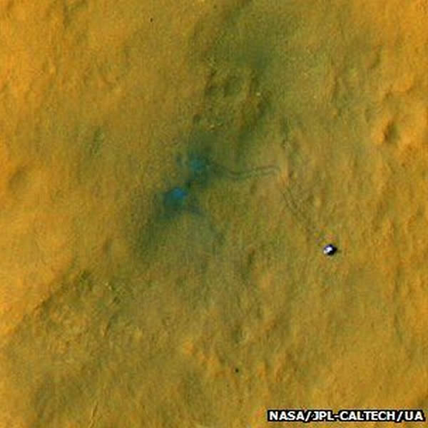“好奇”号火星车也被称为火星科学实验室,从一个月前成功着陆火星到目前为止已经移动了100多米。该项任务负责人麦克-沃特金斯表示,“你能看见火星车白色的甲板和黑色的轮子,你也能看见火星车身后的轮胎痕迹。火星车现在距离着陆地点已经有100多米远了。现在火星车正准备前往一个叫做格雷尔的地点,这个地点在火星车当前所处位置东面大约300米远的地方。要达到这个区域火星车会途径三种不同的地表。”科学家认为格雷尔是最适合对盖尔陨坑进行地质研究的地点。
