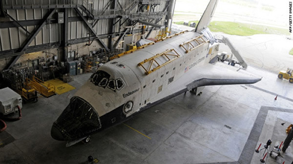 2011年8月11日,“奋进”号航天飞机在肯尼迪航天中心内。